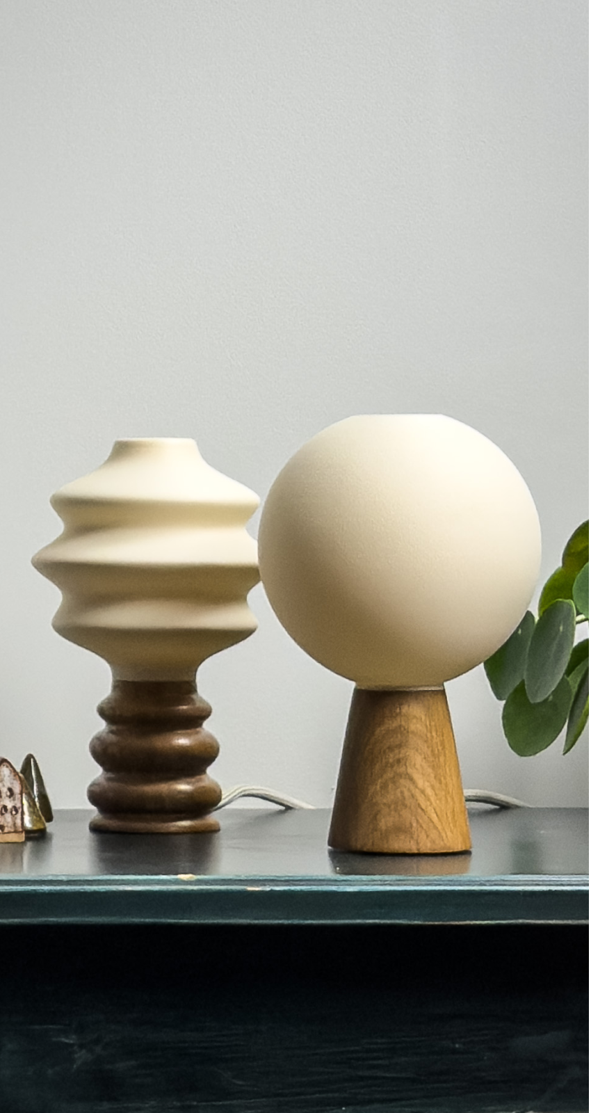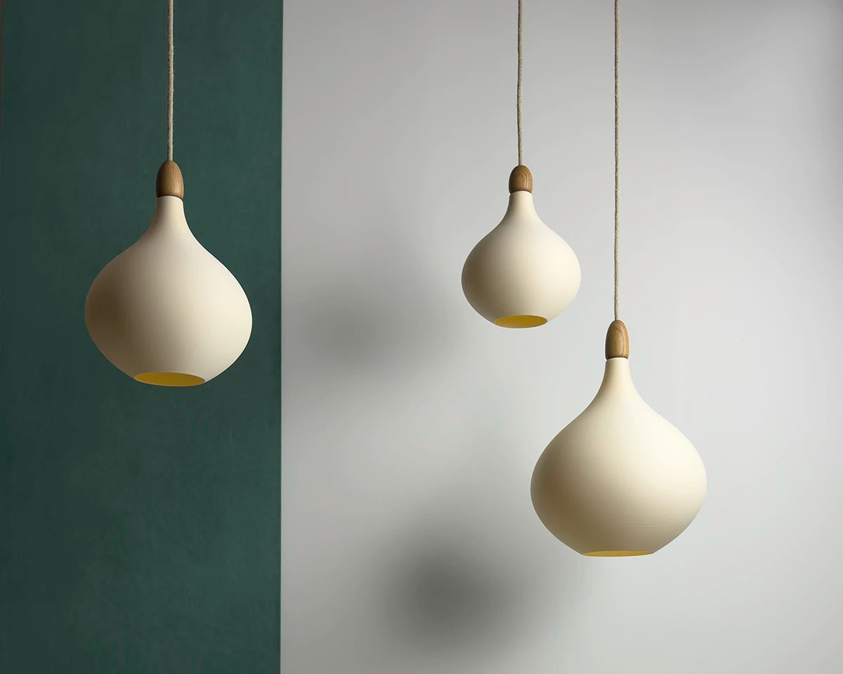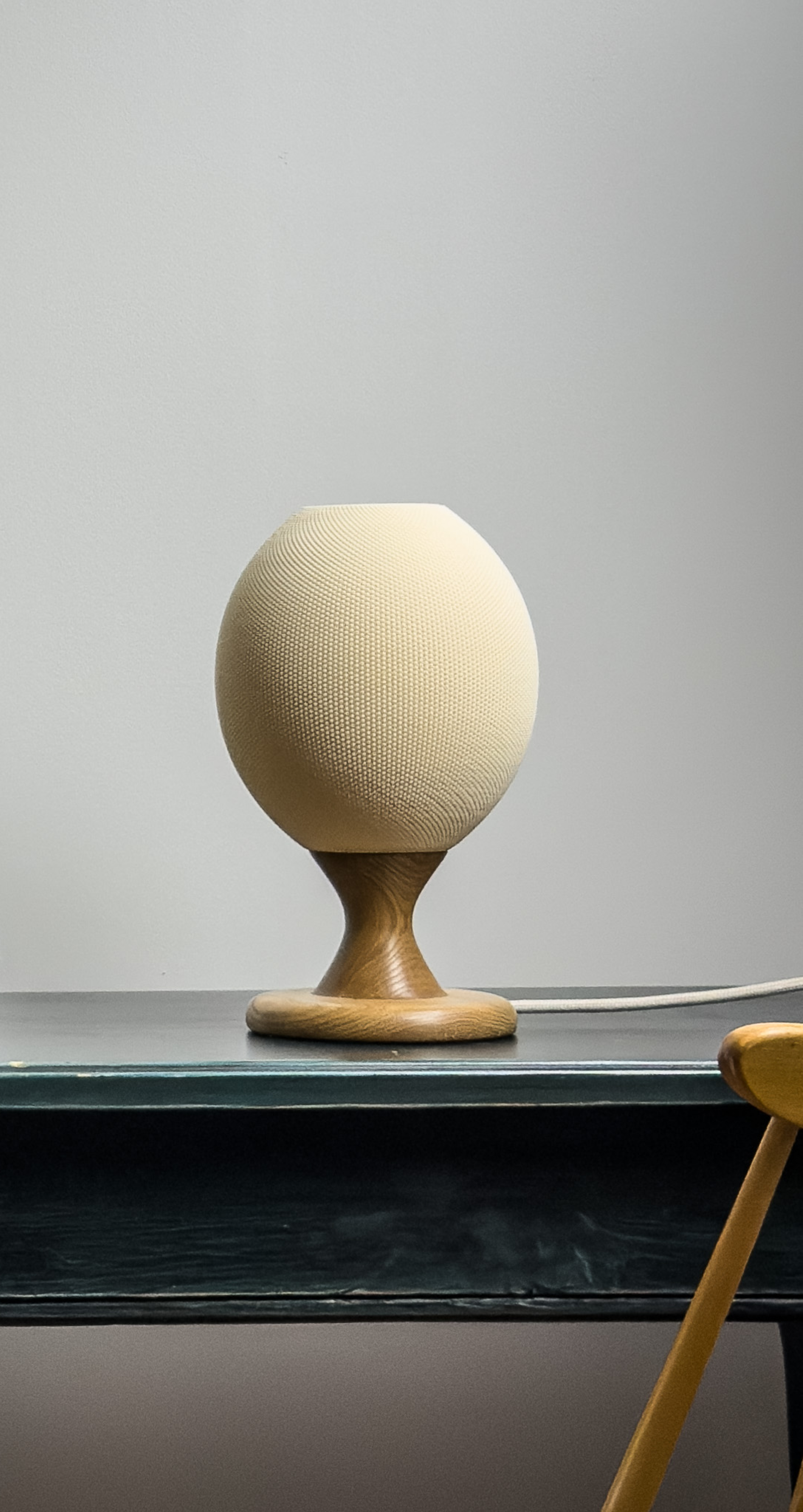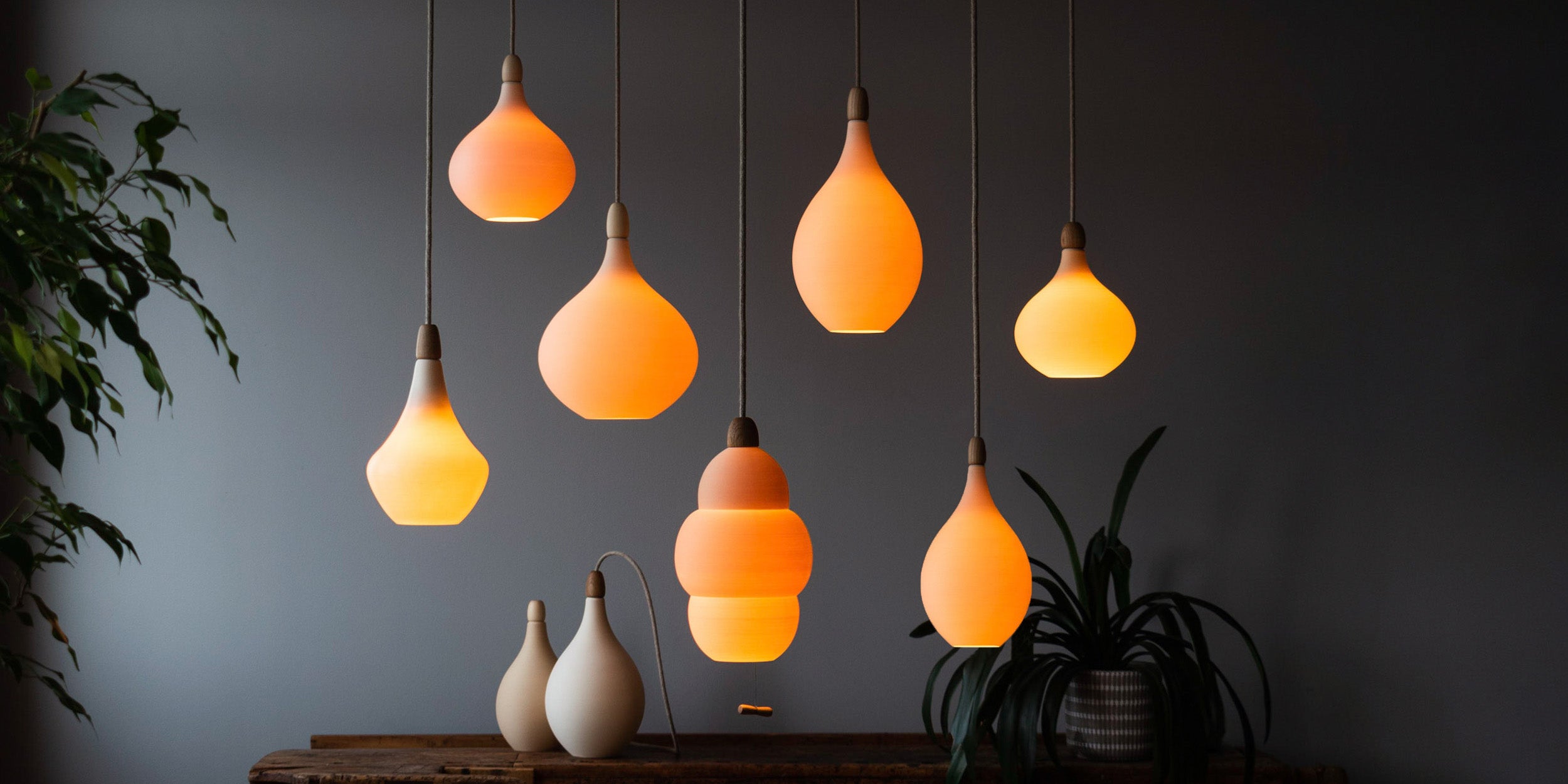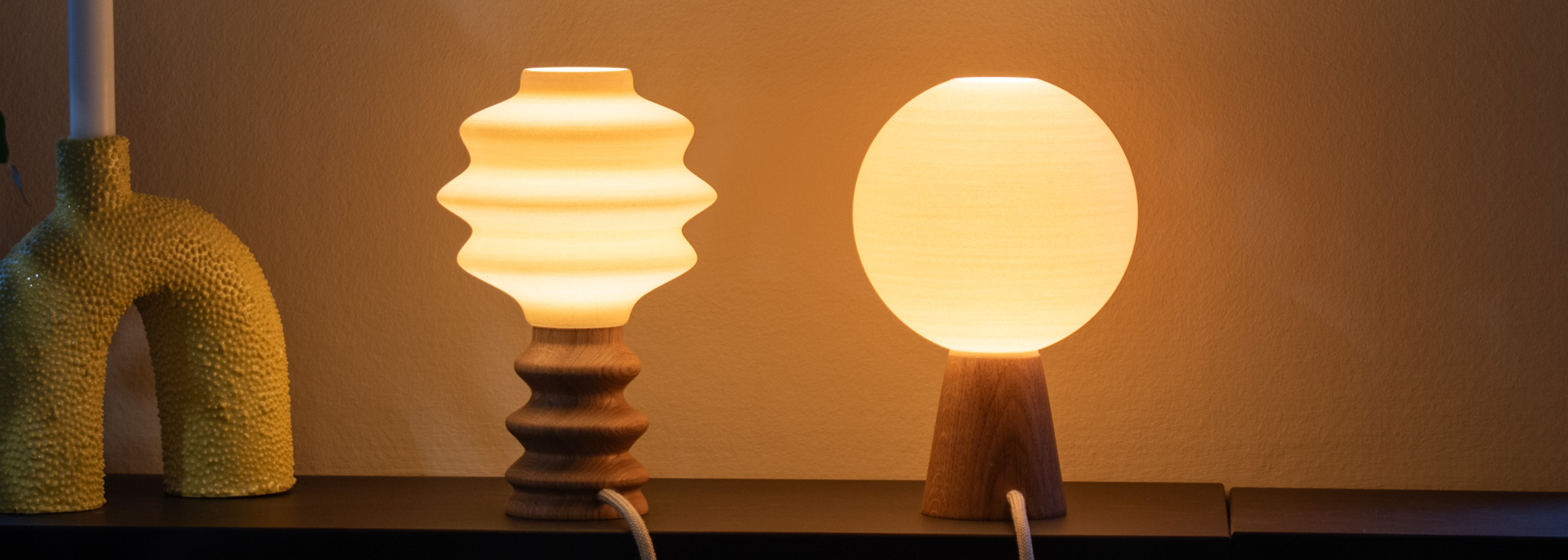 Våra lampor tillverkas av återvinningsbara material, såsom ekologisk cellulosa och ansvarsfullt avverkat trä. Lampskärmarna är skapade i 3D-printer av ett filament gjort av 30% cellulosa och 70% växtbaserad plast (ej oljebaserad) som är helt återvinningsbar. Vi använder även elektronik från svenska tillverkare för att säkerställa högsta möjliga kvalitet och hållbarhet.