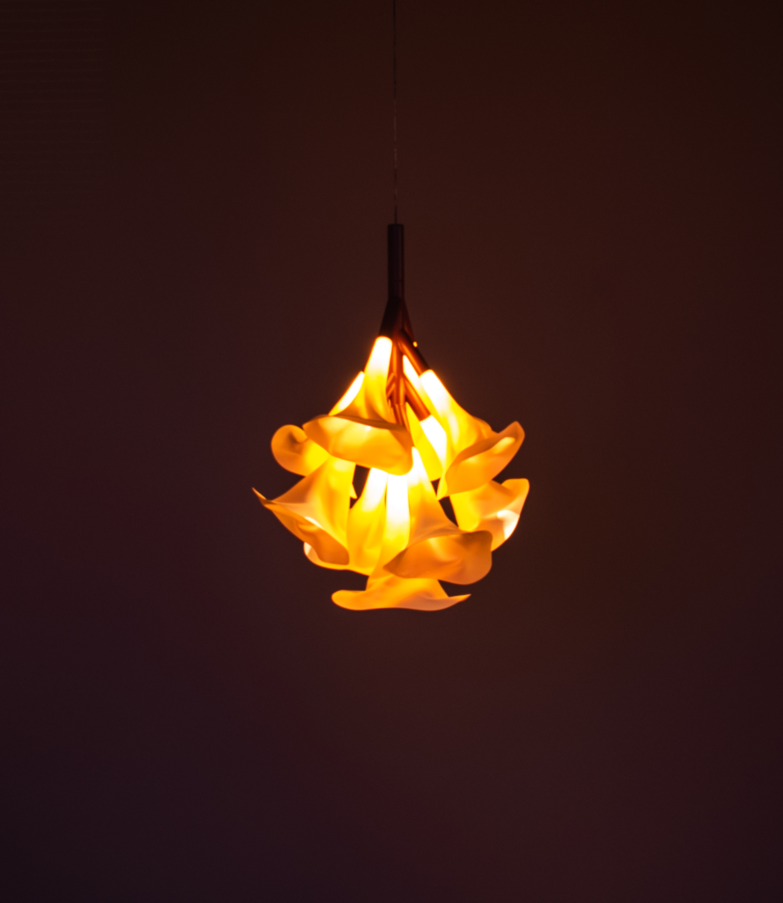Our very first design “Fungk” was the most intricate. Inspired by the funnel chanterelle, we let the light flow through the narrow neck before breaking over the edge, casting soft shadows and creating a playful, warm play of light. There was a natural attraction to it, a feeling of being drawn towards the light, like to a fire. For us it was obvious, more people should experience it, and we wanted to share it.